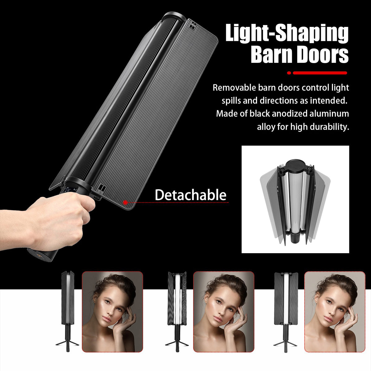 • LUXCEO P520 RGB LED Light Wand Stick With Barndoor Built-in Battery 36 Colors Studio Tiktok Lighting