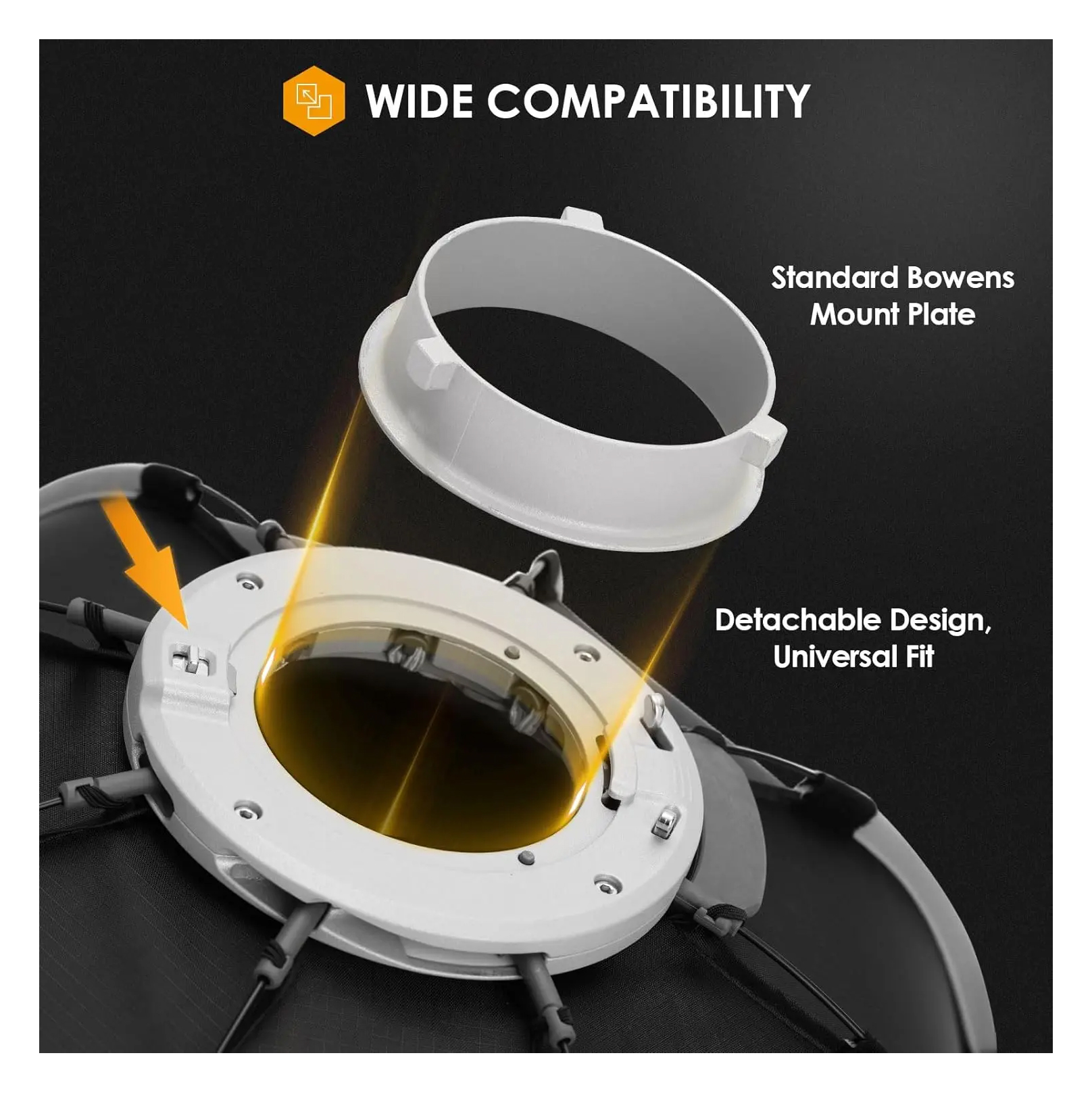 • The Quick-Fold Octagonal Softbox is a must-have for photographers who need professional lighting on the go. Designed with a quick-fold mechanism, it allows for fast setup and takedown—perfect for studio changes or outdoor shoots. Its Bowens mount design ensures wide compatibility with many studio flash units and speedlights, giving you flexibility across different lighting setups.