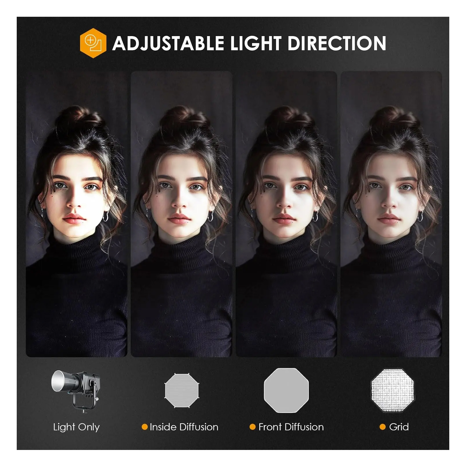 • The octagonal shape produces soft, even light with beautiful, natural catchlights, ideal for portraits, fashion, and product photography. It minimizes harsh shadows and creates flattering illumination that enhances your subject’s features. The softbox includes two diffusers (inner and outer) to control light softness and a honeycomb grid for more focused lighting and reduced spill—perfect for creative or dramatic effects.
