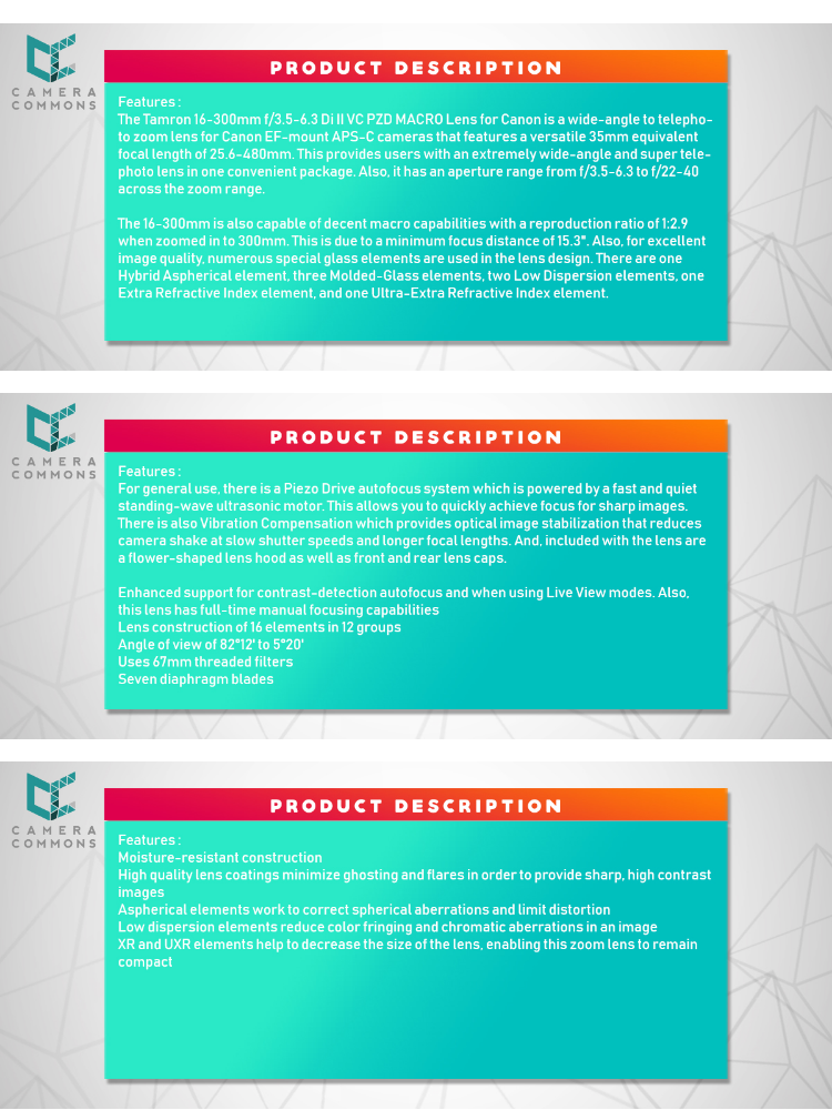 Tamron B016 16-300mm f/3.5-6.3 Di II VC PZD MACRO Lens for Canon DSLR EF Mount Crop Frame