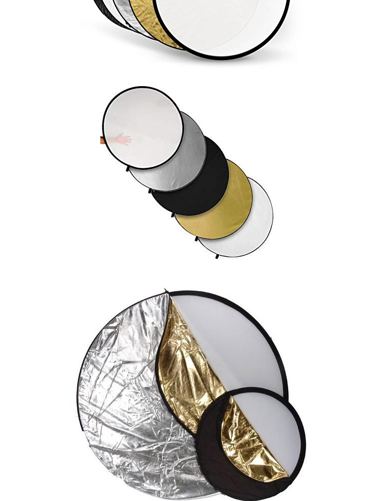 - Package Contains: 1 × 110cm Translucent Panel 1 × White & Black & Silver & Gold Cover 1 × Carrying bag
