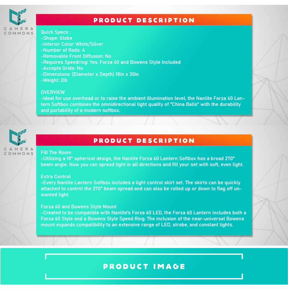 • Made to omni-directionally flood an area of the set with light, the 18" Forza 60 Lantern Softbox from NanLite is especially handy when your subject is subtly lit but you'd like the background to read as well.