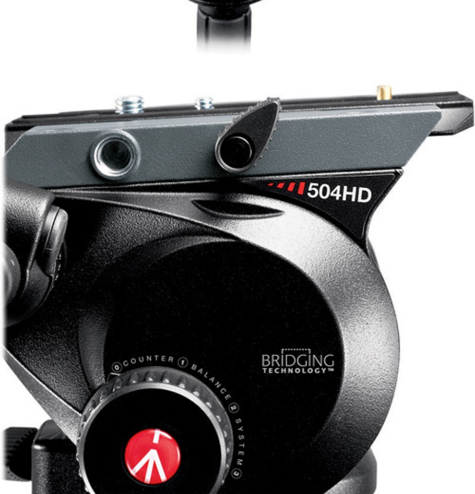 • The Manfrotto 504HD Fluid Video Head features an innovative design that improves performance while reducing weight, as well as offering a soupçon of style. The head's patented Bridging Technology allows for a wider top plate and longer sliding plate that add stability and balance to a set of state-of-the-art professional features. With its ability to support up to 16.5 lb, the 504HD can be used with a variety of video and photo cameras. The newly designed counterbalance system includes four presets from 0 to 16.5 lb, enabling proper balance no matter what the camera's size or weight.