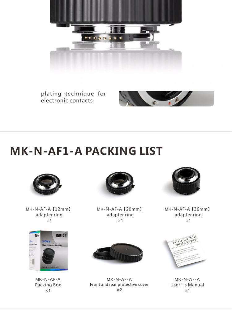 MEIKE MK-N-AF1-A Adapter Auto Focus Extension Tube Ring AF for Nikon DSLR Metal