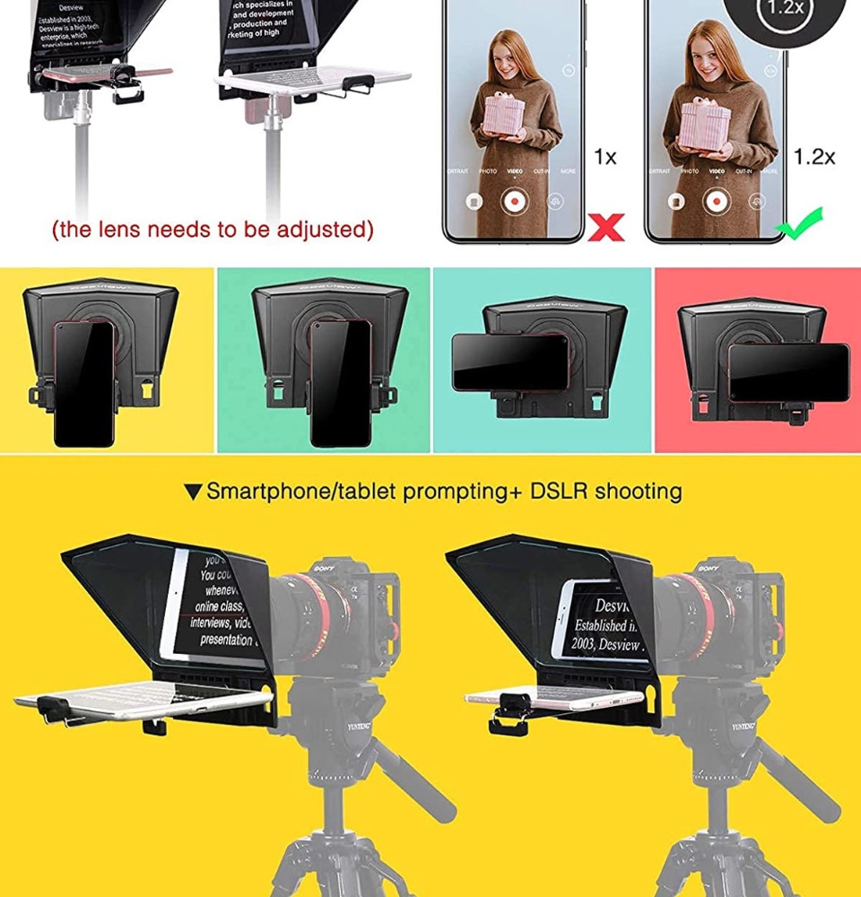 - 1. Small Size Portable Teleprompter: Compatiable with DSLR camera & small size camcorder,can use with smartphones & iPad size below 8 inch.