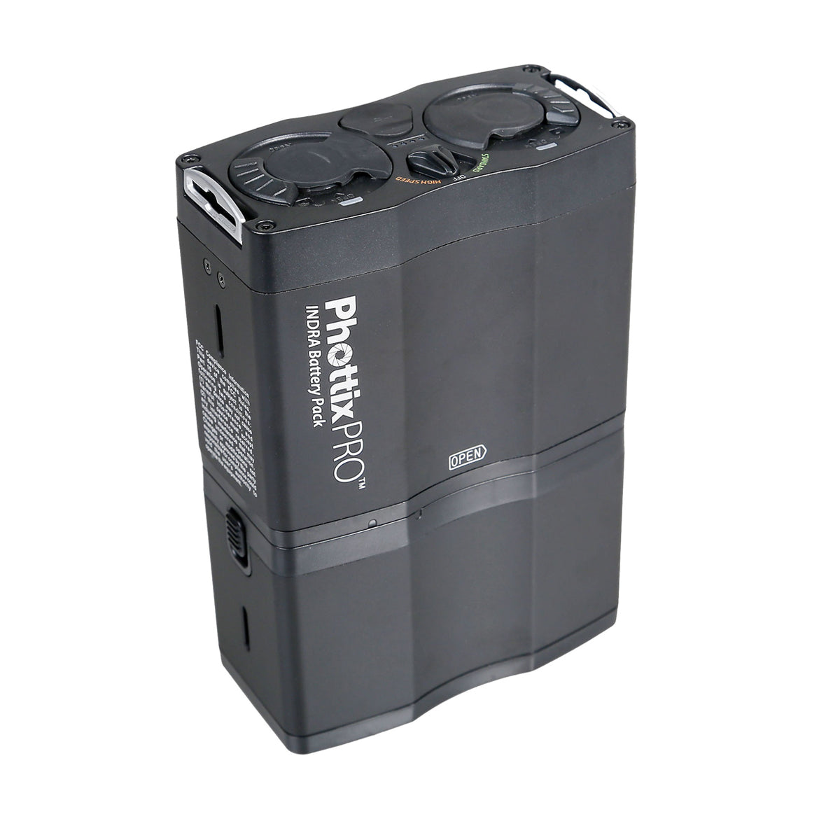 - Using a Li-ion Battery Pack the Phottix Indra is the perfect on location light with recharge times of 3.5 seconds and 360 full-power flashes (High-Speed Mode) when fully charged. ItÂs small but extremely powerful. The Indra500 is a lot of power and control packed into a compact studio light.
