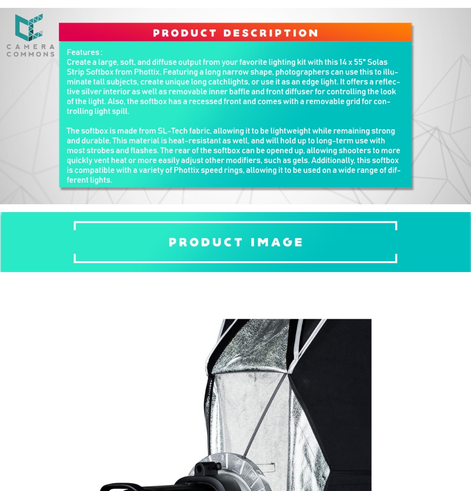 - The Phottix Solas Series of softboxes – new materials, lighter weight – same great light properties and Phottix durability.