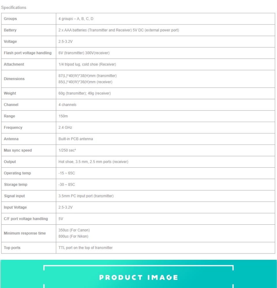 - Pass through hot shoe transmitter allows TTL controll