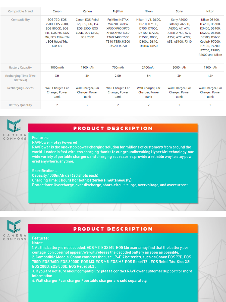 - Backup battery: carry a fully charged battery so you're never left without power; only 3 hours to simultaneously recharge both batteries with the micro-USB 5V/2A input