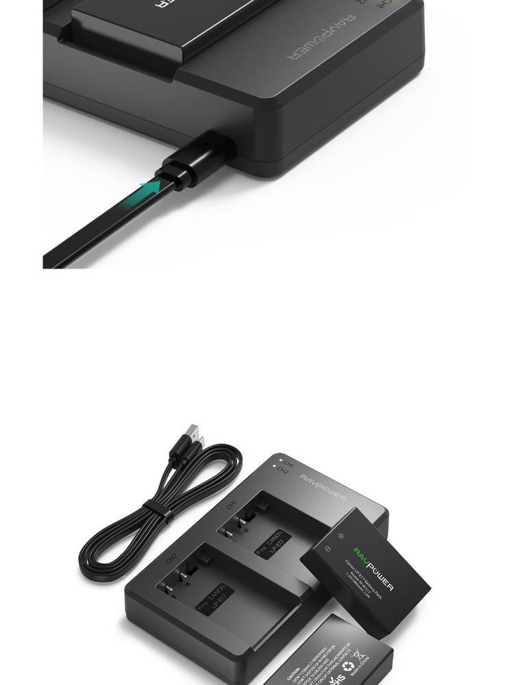 RAVPower LP-E17 Camera Battery Charger with 2pcs Batteries Set for Canon EOS Rebel Cameras LPE17