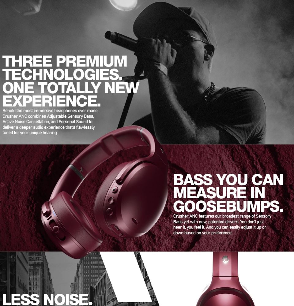- Behold the most immersive headphones ever made. Skullcandy crusher ANC combines adjustable sensory bass, active noise cancellation, and personal sound to deliver deeper, unparalleled sound that’s flawlessly tuned for your unique hearing.