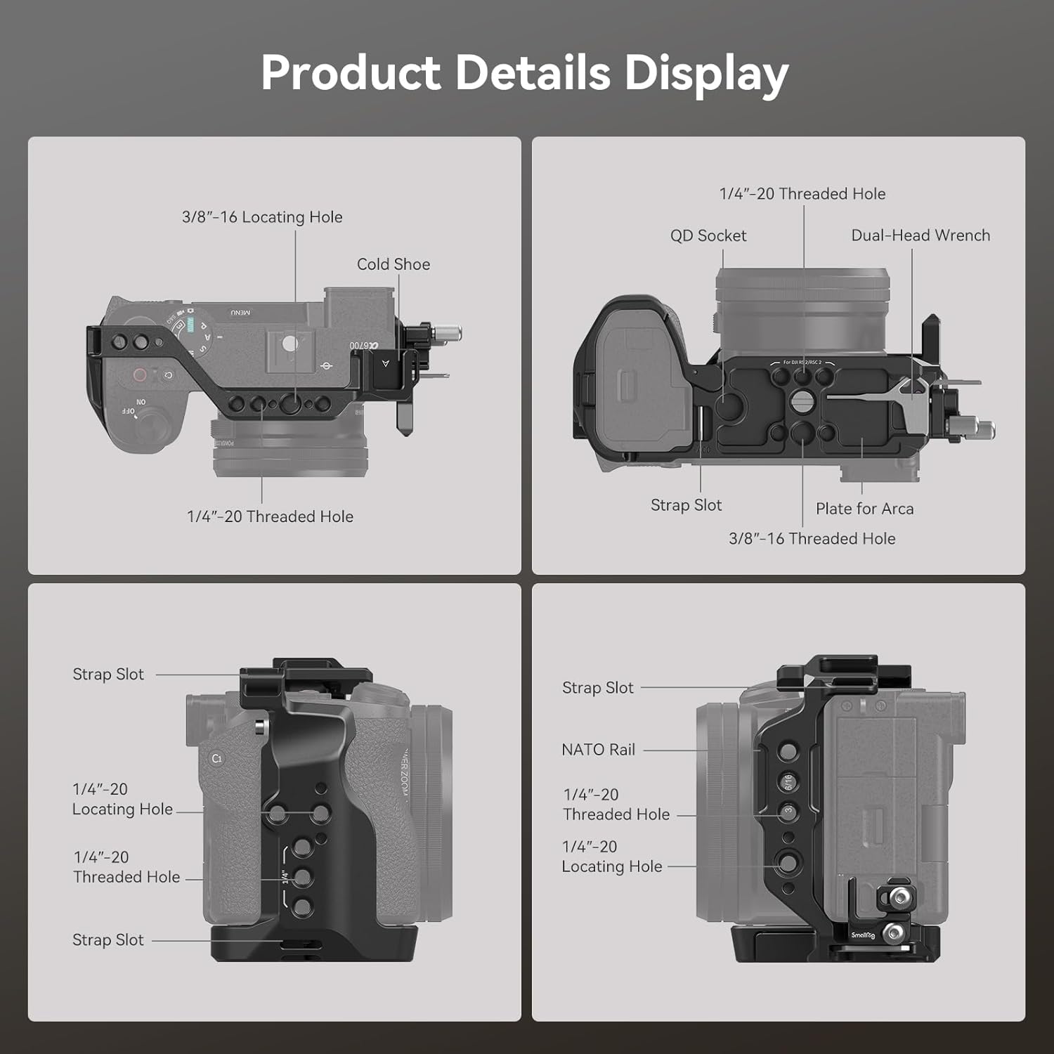 - Full Protection: The all-in-one complete housing fits the Sony A6700 very well, locks the camera by 1/4"-20 screw and M2.5 screw, which maintains full access to your ports, controls and battery door and provides protection for your portable camera platform. Note: Remove the strap ring on the right side of the camera before installing the cage. Refer to the user manual for installation.