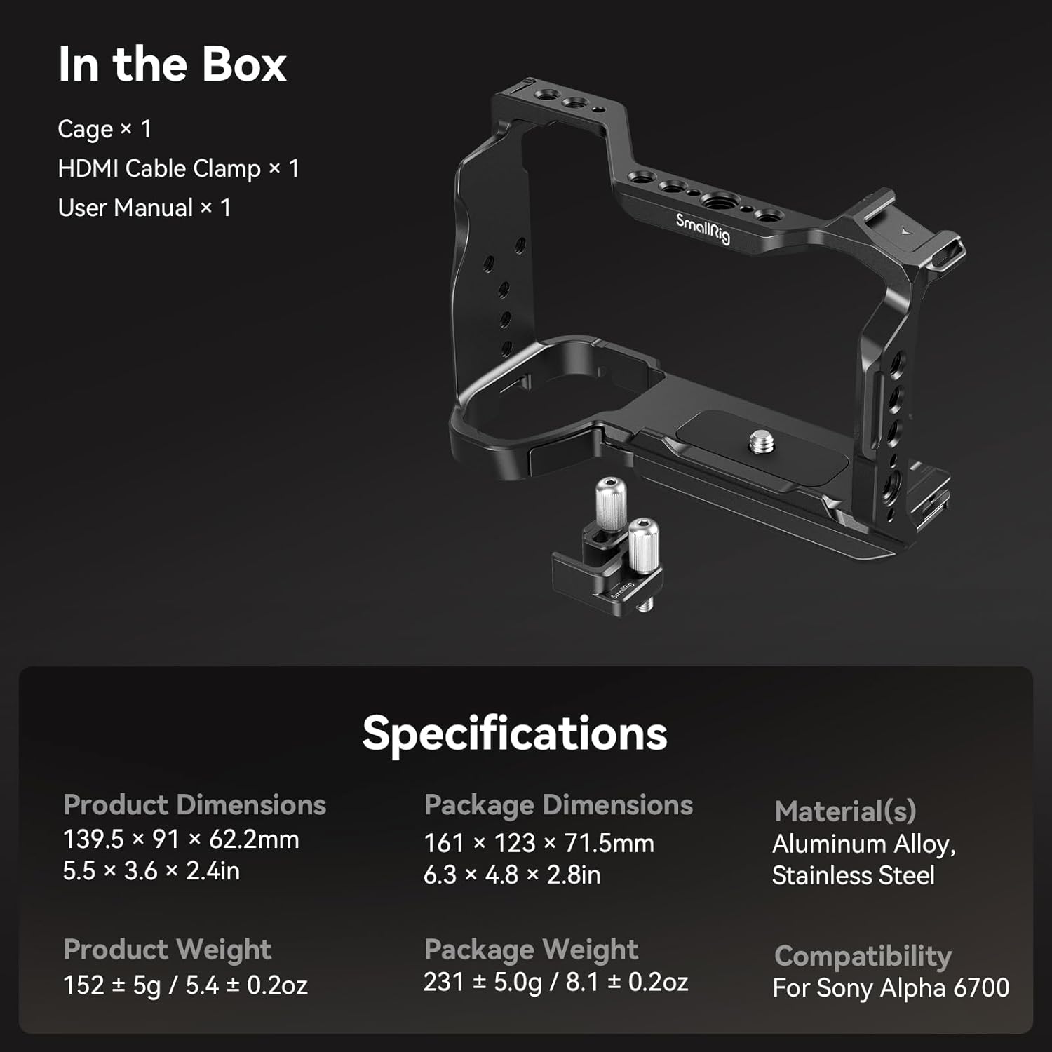 - For Sony A6700: SmallRig Cage 4336 is designed for Sony A6700 with its multiple accessory mounting points, which also allows you to focus on capturing stunning images.