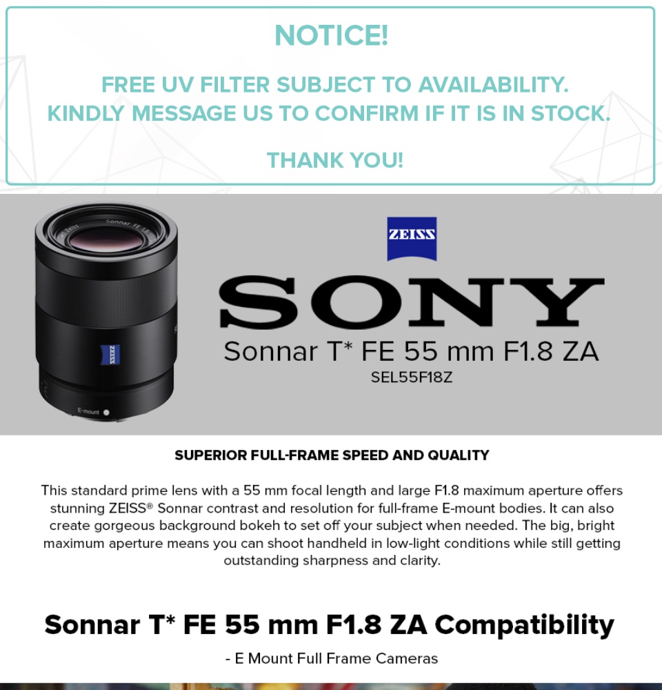 Sony SEL55F18Z/ Sonnar T* FE 55mm F1.8 ZA Lens