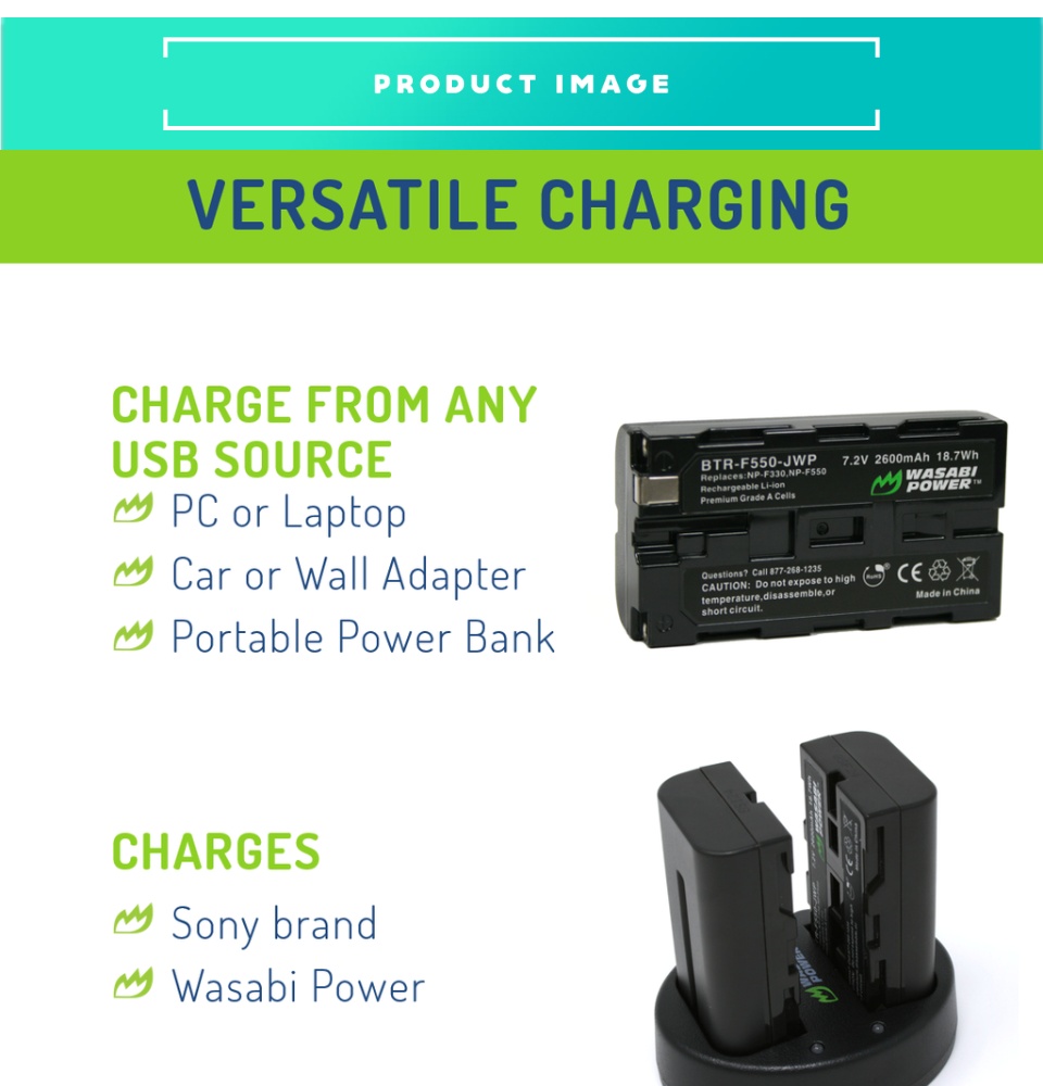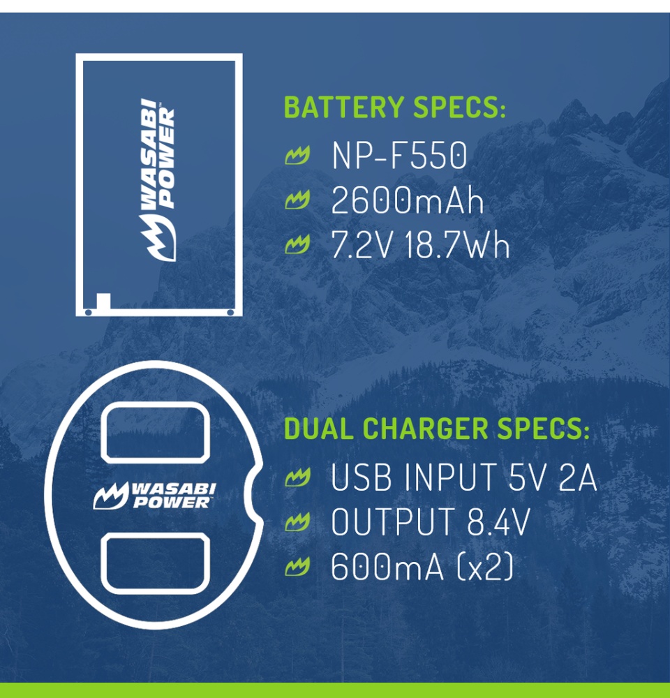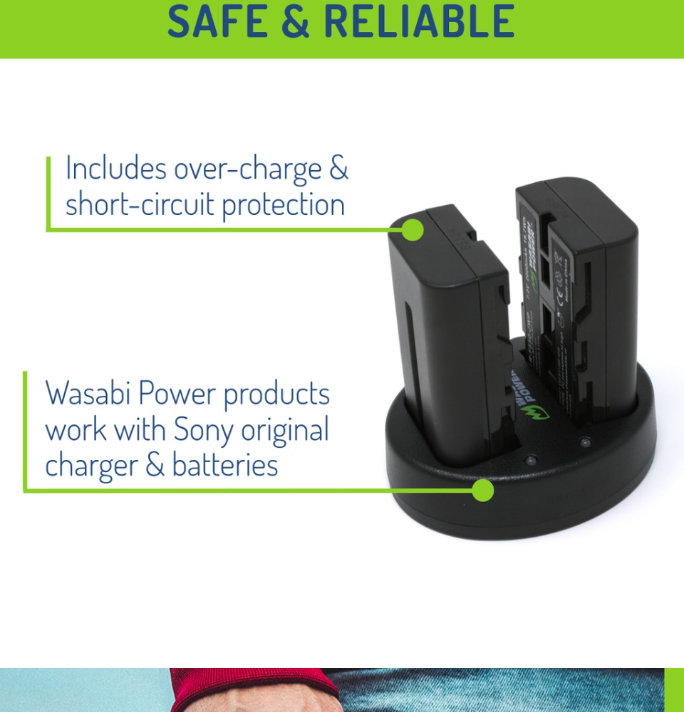 - This Wasabi Power battery and charger kit includes 2 batteries and one dual USB charger. All items meet or exceed OEM standards and come with a 3-year manufacturer warranty. Need a Sony L series battery? Grab a Wasabi Power L series battery. It's a great replacement!