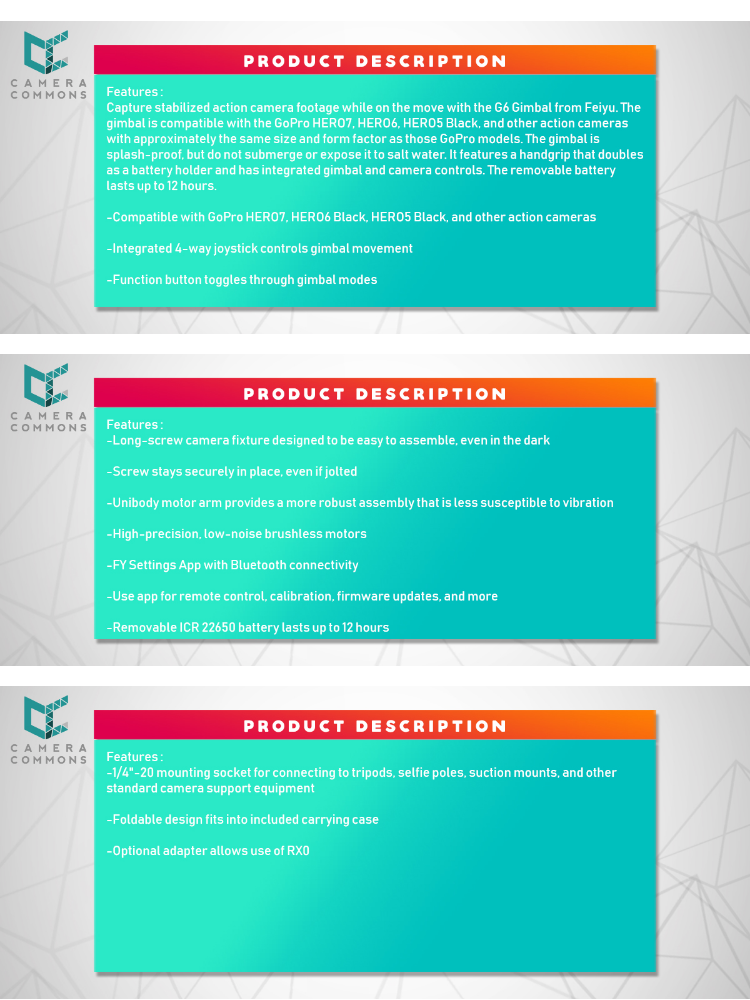 • Feiyu G6 3-Axis Stabilized Handheld Gimbal Feiyutech