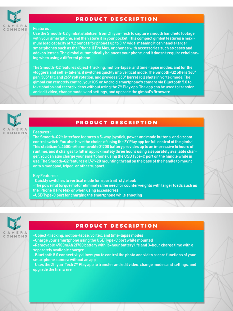 Zhiyun Smooth Q2 Smartphone Gimbal Stabilizer for Photography Videography