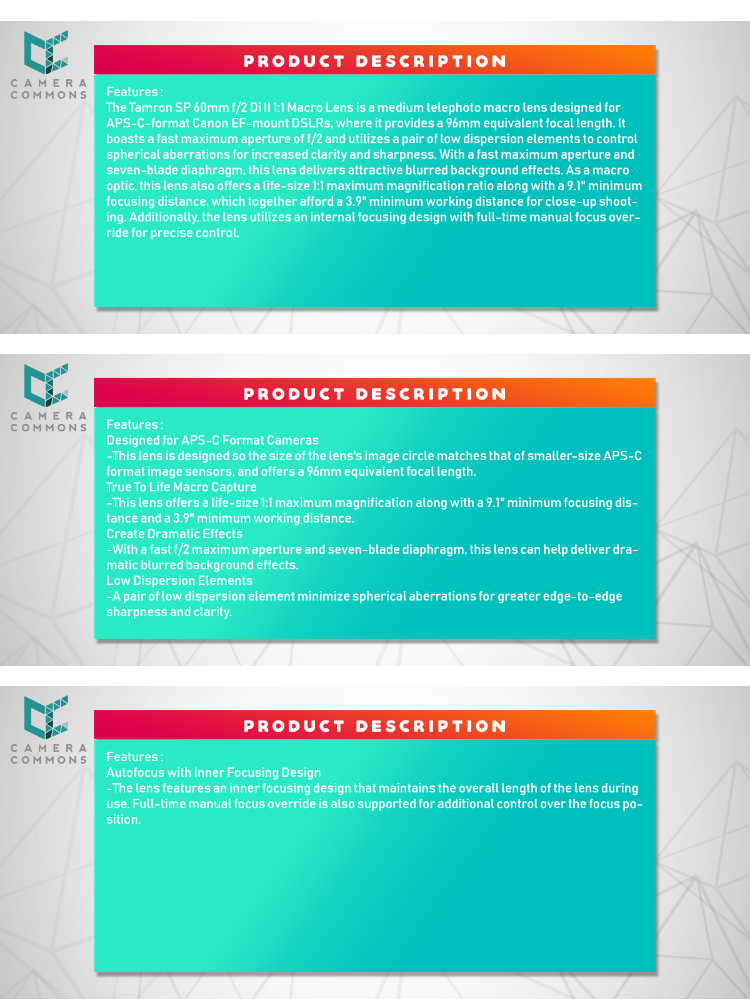 Tamron G005 SP 60mm f/2 Di II 1:1 Macro Prime Lens for Canon DSLR EF Mount Crop Frame