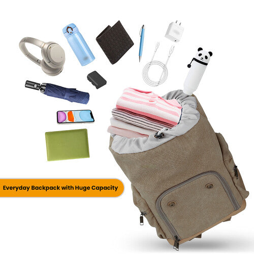 • Protect and carry your camera gear and personal items with the M02 Canvas Camera Backpack from Tarion. This 14.5L pack has a classic vintage design with a top compartment ideal for holding your personal items and clothing. The separate padded bottom compartment accommodates a camera plus three to five lenses and accessories.