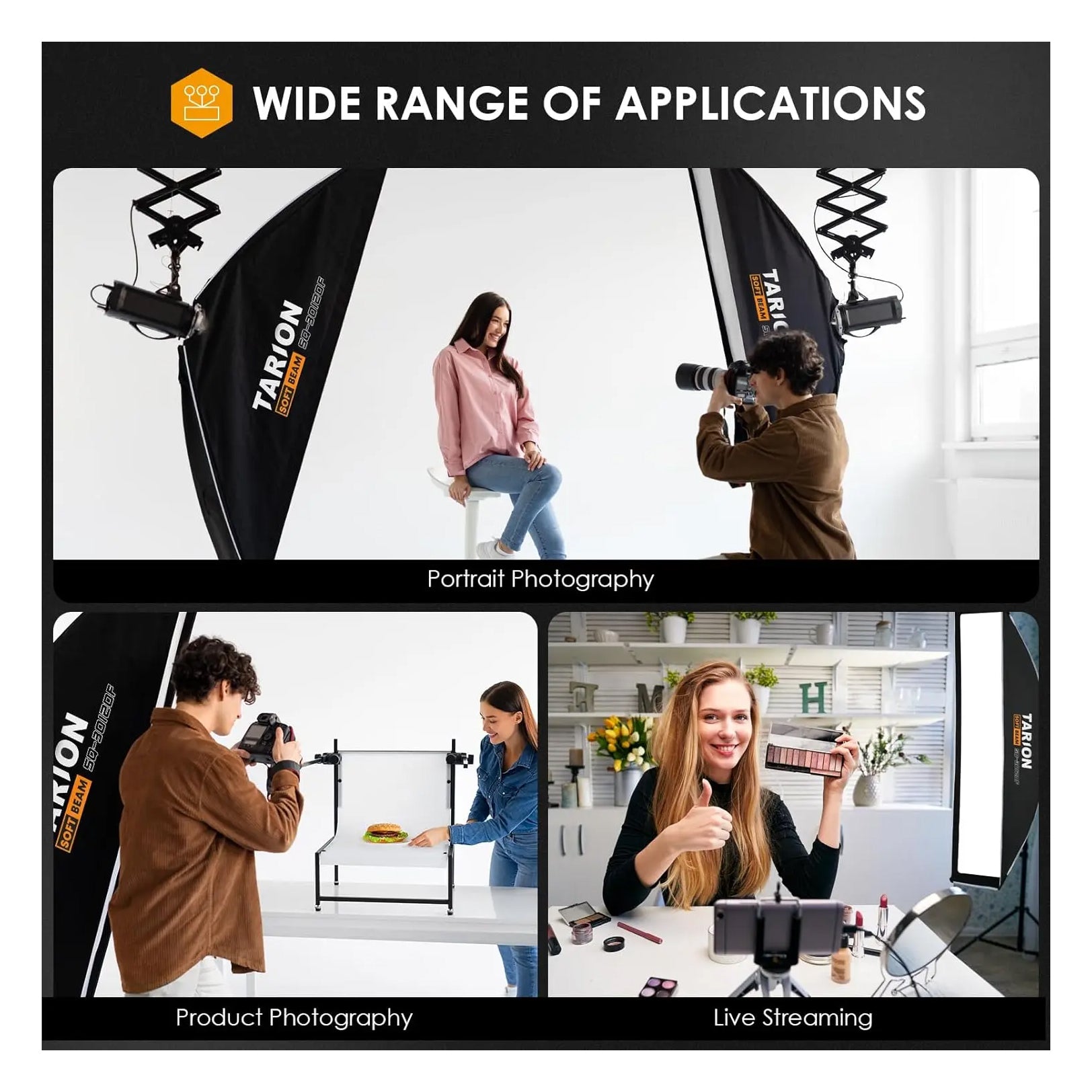 - 【23.6in*35.4in Softbox Lighting Kit】Measuring 23.6x35.4 inches (60x90 cm), this rectangular softbox is perfect for a wide range of photography and video applications. Whether you're shooting portraits, product photography, or live streaming, this softbox ensures even and flattering lighting every time.