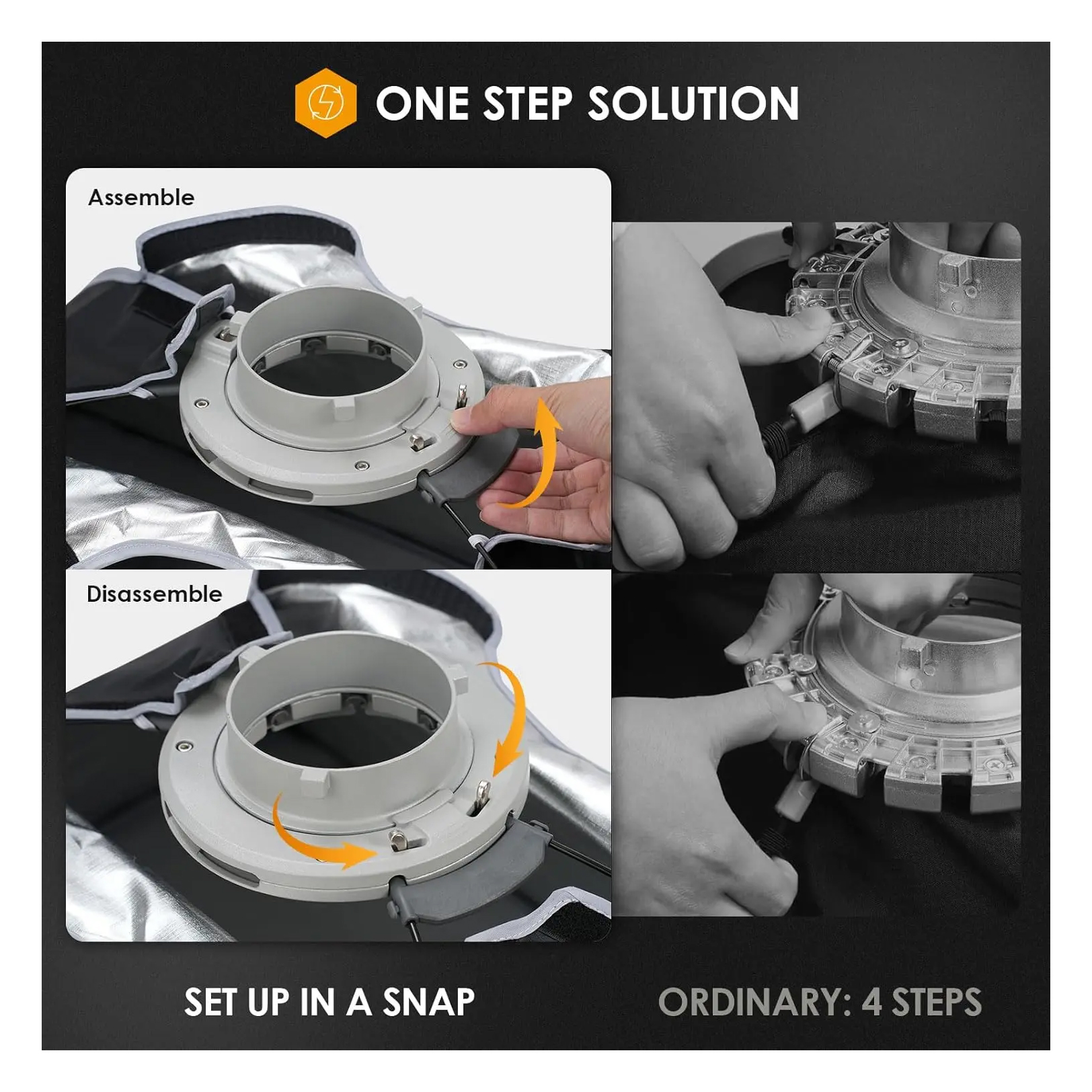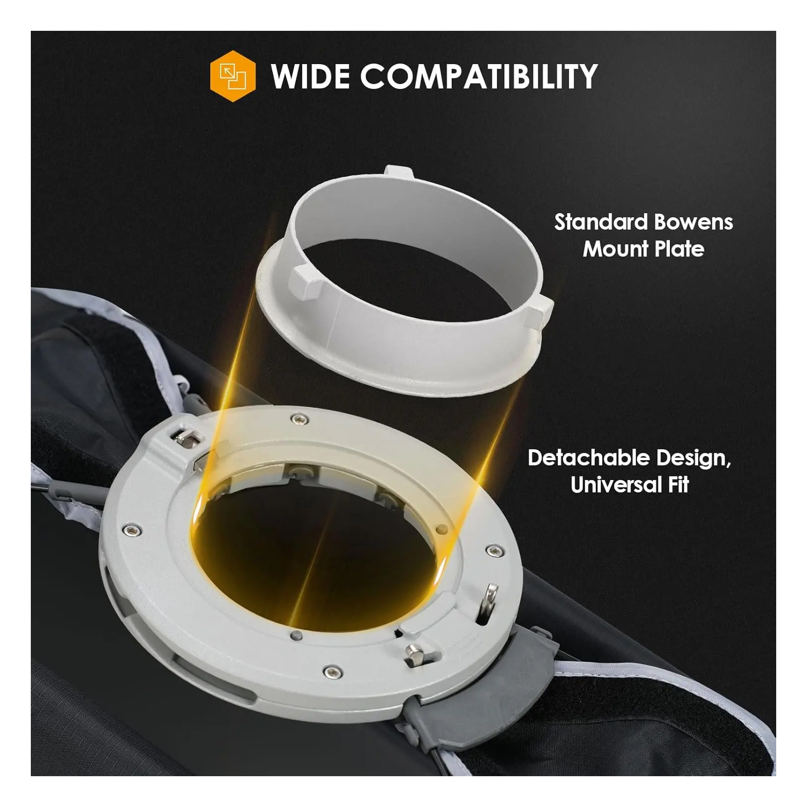 - 【Quick Release Bowens Mount Softbox】Versatility at its best. The Bowens mount design ensures this softbox is compatible with a wide range of studio flash units and speedlights, allowing you to use your speedlights without any hassle. Enhance your lighting setup with ease.