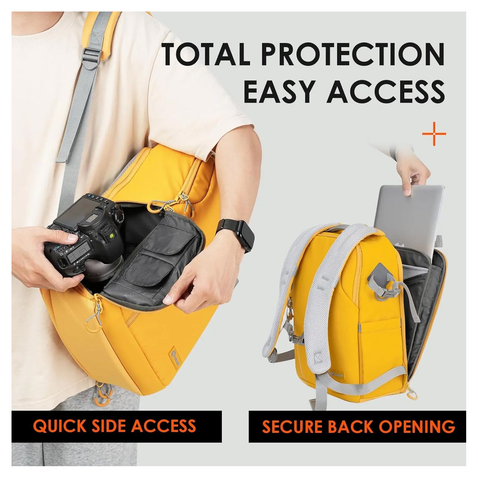 • Tarion TR-L Slim Camera Backpack Yellow Compact and Lightweight 12 Compartments and Pockets