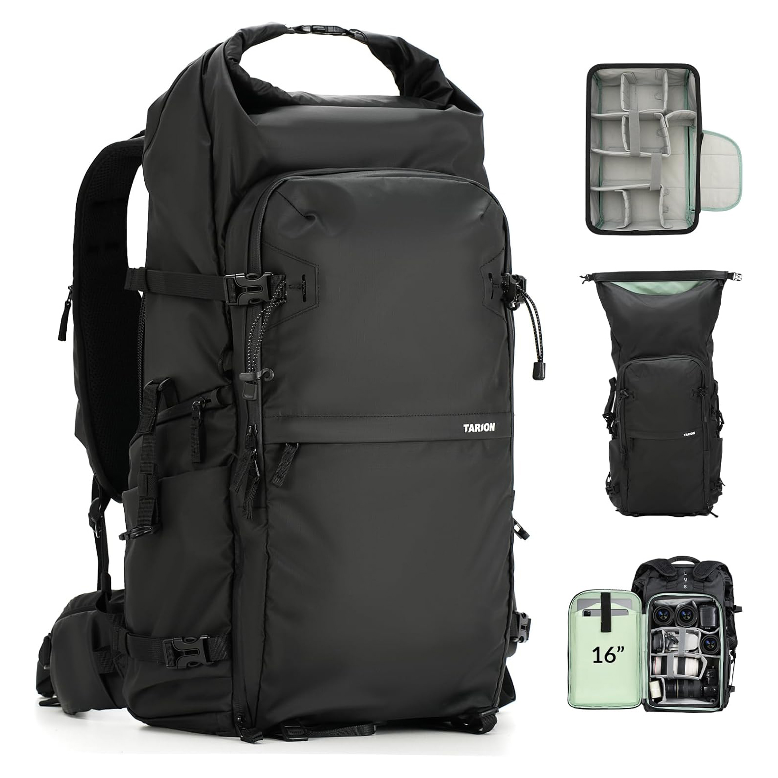 • Tarion Xprober TR-XP Rolltop Large Camera Backpack Bag 35L Capacity with Laptop Compartment