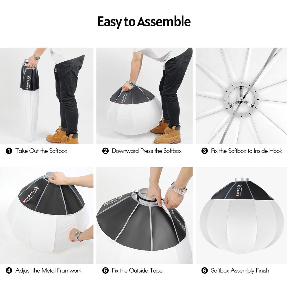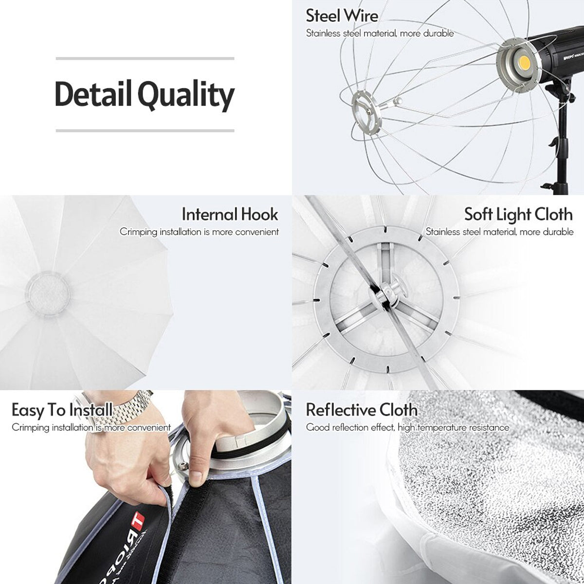 - Adopts Chinese traditional lantern shape design and with 65cm/26in large diameter, the softbox is able to control 360-degree light beam angle for omni-directionally lighting up a entire space, no shadow and uniform illumination. Special fast set-up system enables you to assemble and disassemble the softbox in seconds, and foldable design make it easy to store and carry, very flexible and convenient. Equipped with standard Bowens mount, fit for most studio strobes and LED fixtures, perfect for newborn photography, portrait shooting, live streaming, fashion photography, etc. Made of high density soft light fabric, heat-resistant, durable and efficient, and translucent white fabric creates a soft, even, natural and shadow-free lighting effect. With tough and tensile metal framework inside, durable and flexible, not easy to deform even after long time use. A perfect soft light modifier accessory for photography lighting.