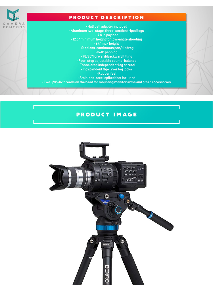 Product details of Benro A373FBS8 S8 Video Tripod with S8 head and AL flip Lock legs Kit