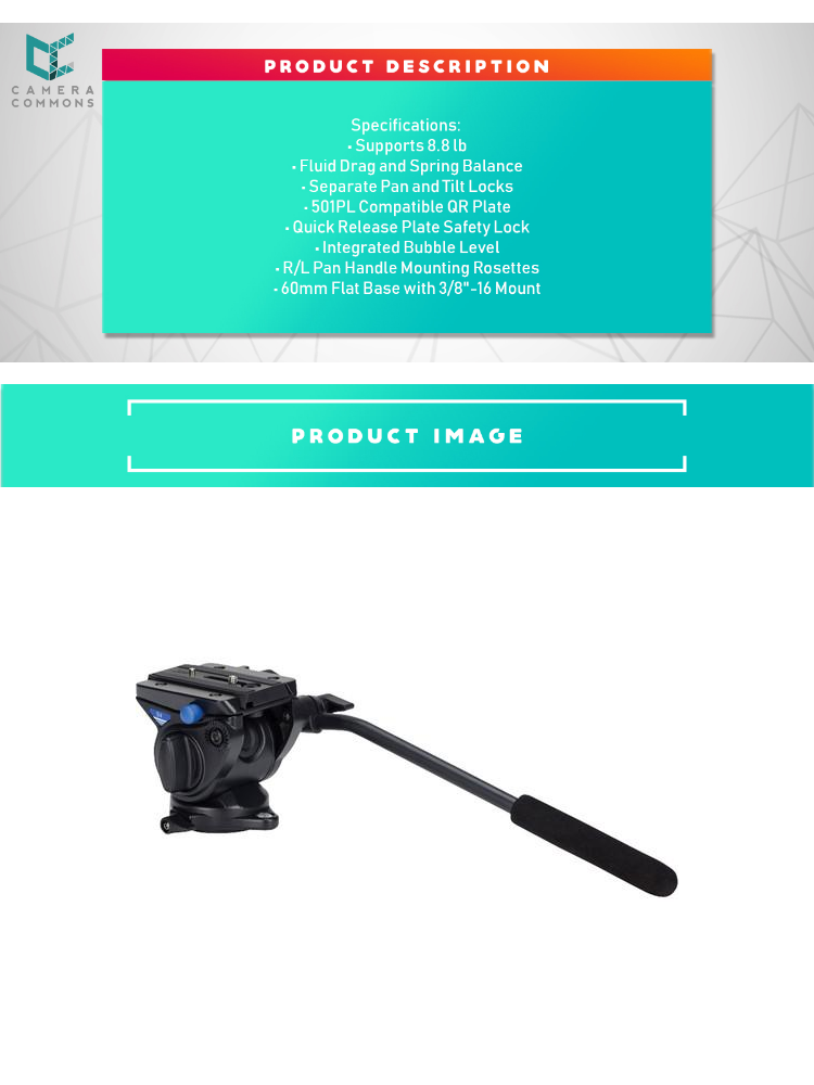 - The compactBenro S4 Video Headweighs only 1.5 pounds and can support cameras weighing up to 8.8 pounds. The head has a fluid drag system and spring balance, with 360° panning rotation for smooth camera moves. There are separate pan and tilt lock levers for locked-off shots. The sliding quick release (QR) plate helps balance the camera, and the head comes with a safety lock for the QR Plate. The S4 Video Head accepts 501PL compatible quick release plates, making it easy to find spares or replacements.