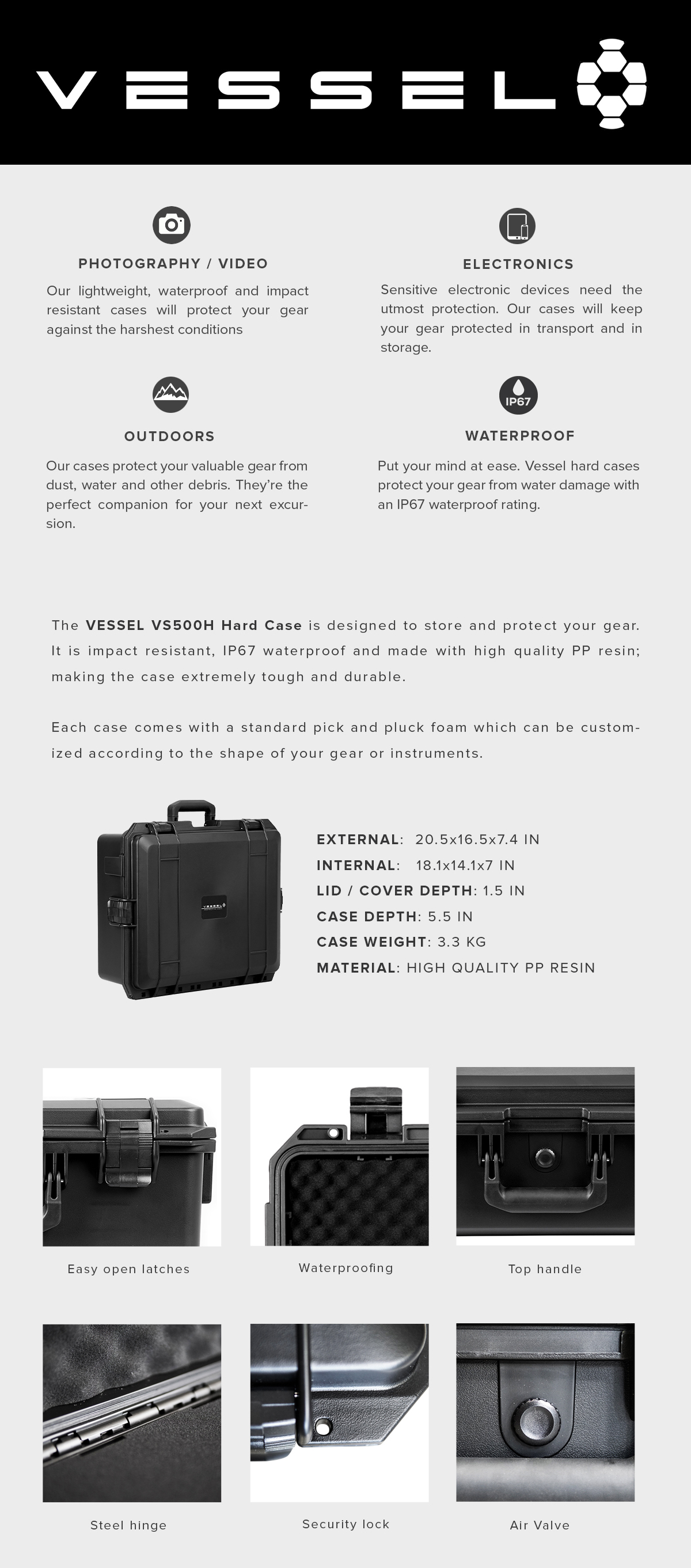 VESSEL VS500H Portable Protective Hard Case for Photography, Equipment, Instruments, Watches and other devices VS4636H