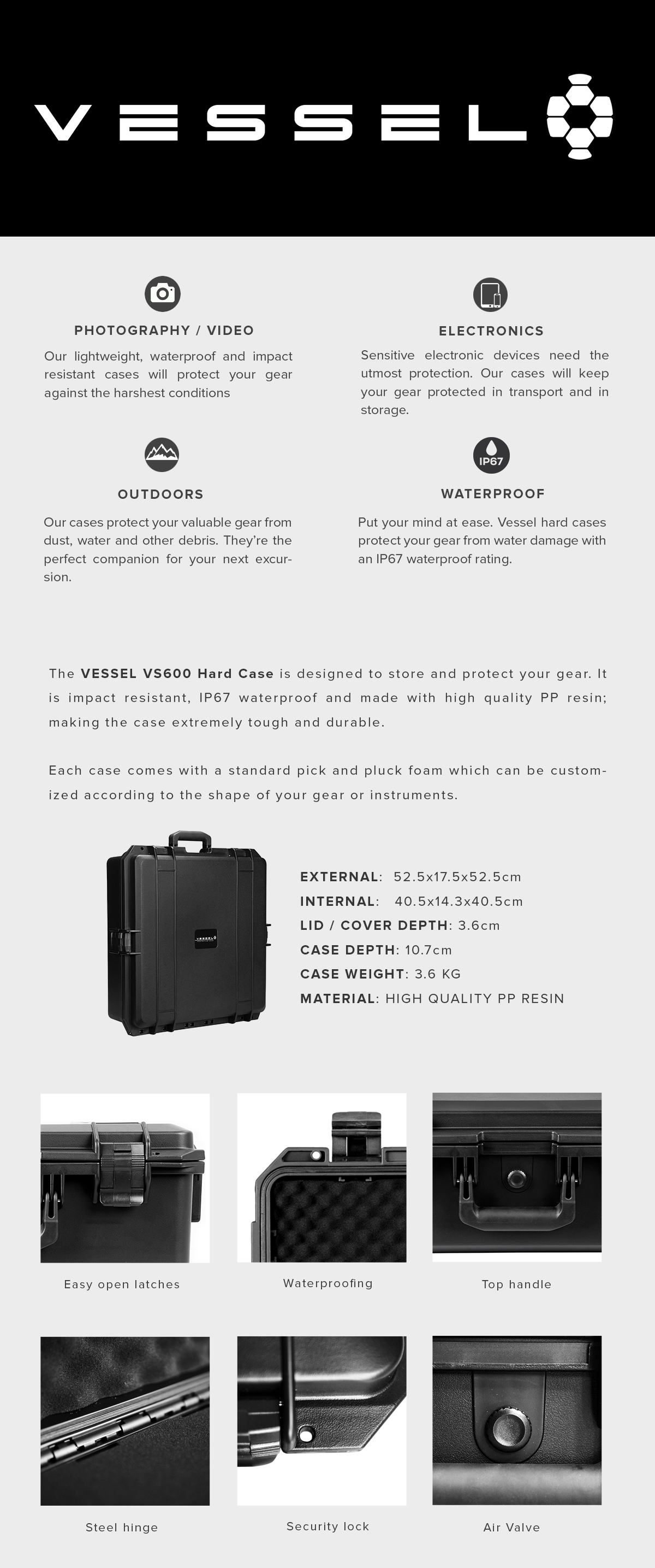 VESSEL VS600 Portable Protective Hard Case for Photography, Equipment, Instruments, Watches and other devices VS4646L