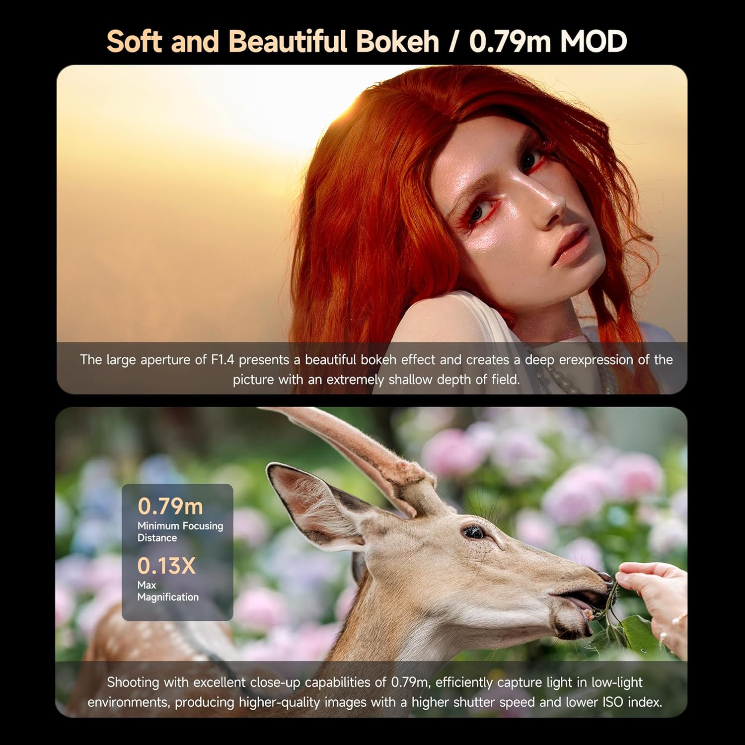 • 【85mm Portrait Lens-Your Portrait Master】The 85mm focal length provides a 127.5mm equivalent focal length. As the definitive focal length for portrait artistry, the AF 85mm F1.4 Pro master fully adapts to every creative vision--whether capturing intimate full-frame portraits,dynamic full-body compositions, or fleeting emotional nuances.
