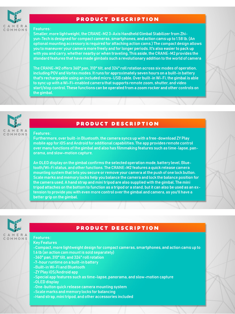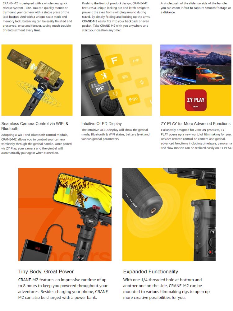 Zhiyun Crane M2 3 Axis Handheld Gimbal Stabilizer for Compact Cameras Videography Vlog