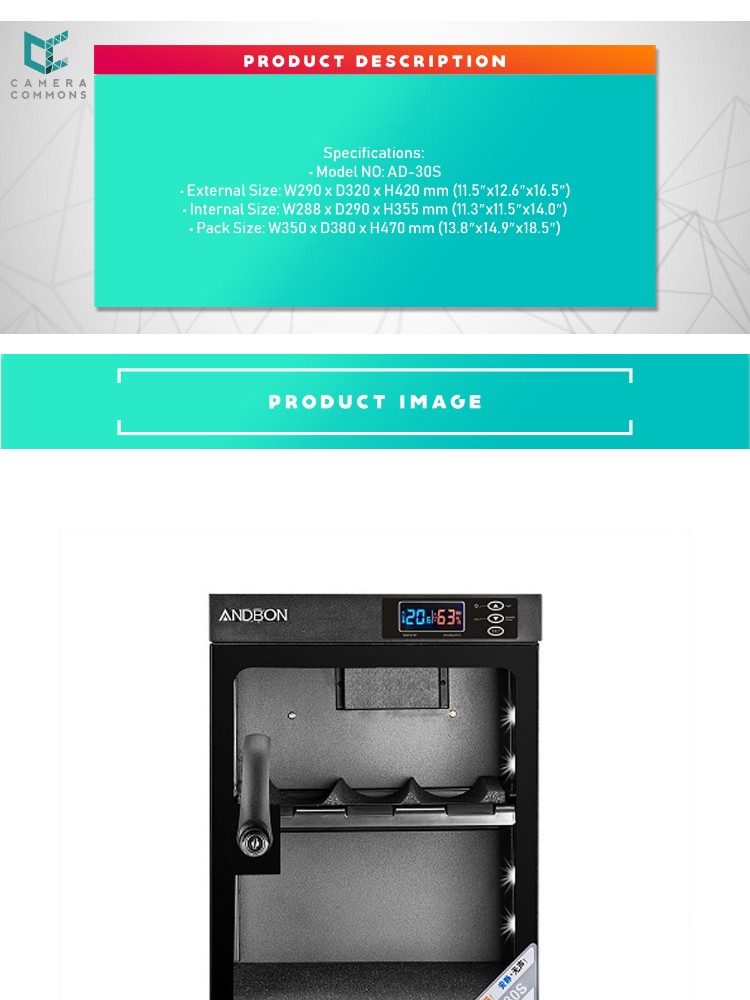 - Andbon Dry Box Series (25%~60% RH) provides the best moisture damage prevention for aging, molding, spoiling, rusting, corrosion, denaturing, etc