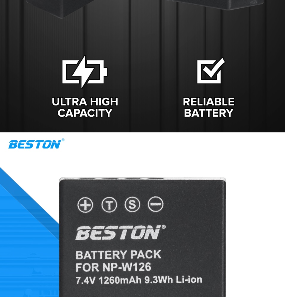 - The NP-W126S Lithium-Ion Battery Pack from BESTON is an equivalent battery to the FUJIFILM NP-W126S battery, and it operates with the same cameras. It features an honest 1260mAh capacity, providing ample power for the camera when you need it most. This battery is made with high-quality cells for long-lasting performance.