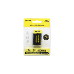 Beston 2800mwh 1850mah AA Rechargeable Li-ion Battery with Micro USB Input 2AM-75