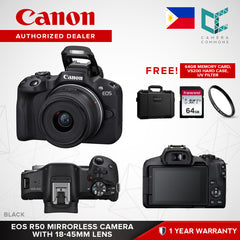 Canon EOS R50 Mirrorless Camera with 18-45mm Lens Black White APS-C 4K 30p DIGIC X Vertical Movie Mode