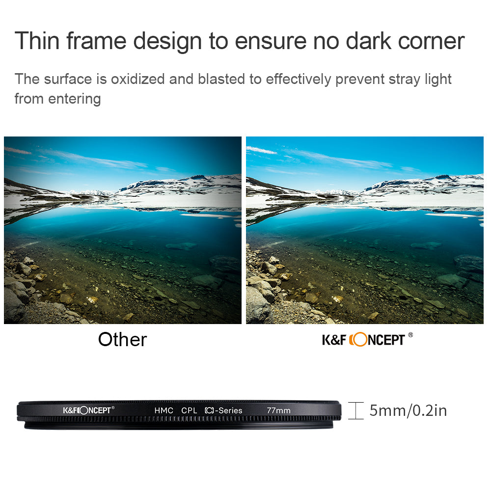 • K&F Concept circular polarizer made of Japan optical glass,deepens the intensity of blue skies; reduces or eliminates glare