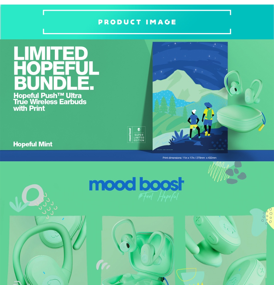 CLEARANCE Skullcandy Hopeful Mint Bundle Push Ultra S2BDW-N886 Wireless Earbuds