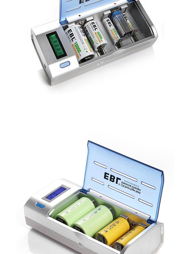 EBL 4 Bay LCD Smart Battery Charger for AA , AAA , C , D , 9V , Ni-MH , Ni-CD Rechargeable Batteries NiMH NiCD Camera Commons PH
