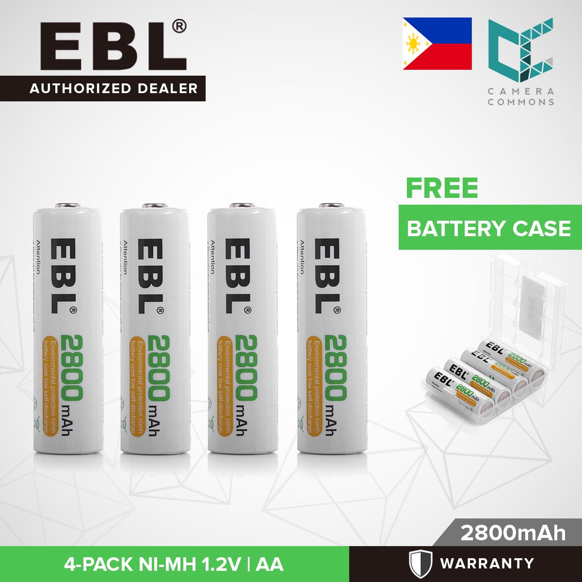 EBL 4 Pack 1.2V AA Size 2800mAh Rechargeable battery - Ni-MH NiMH Batteries Camera Commons PH