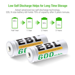 EBL 4Pack 1.2V N Size 600mAh Rechargeable battery - Ni-MH NimH Camera Commons PH
