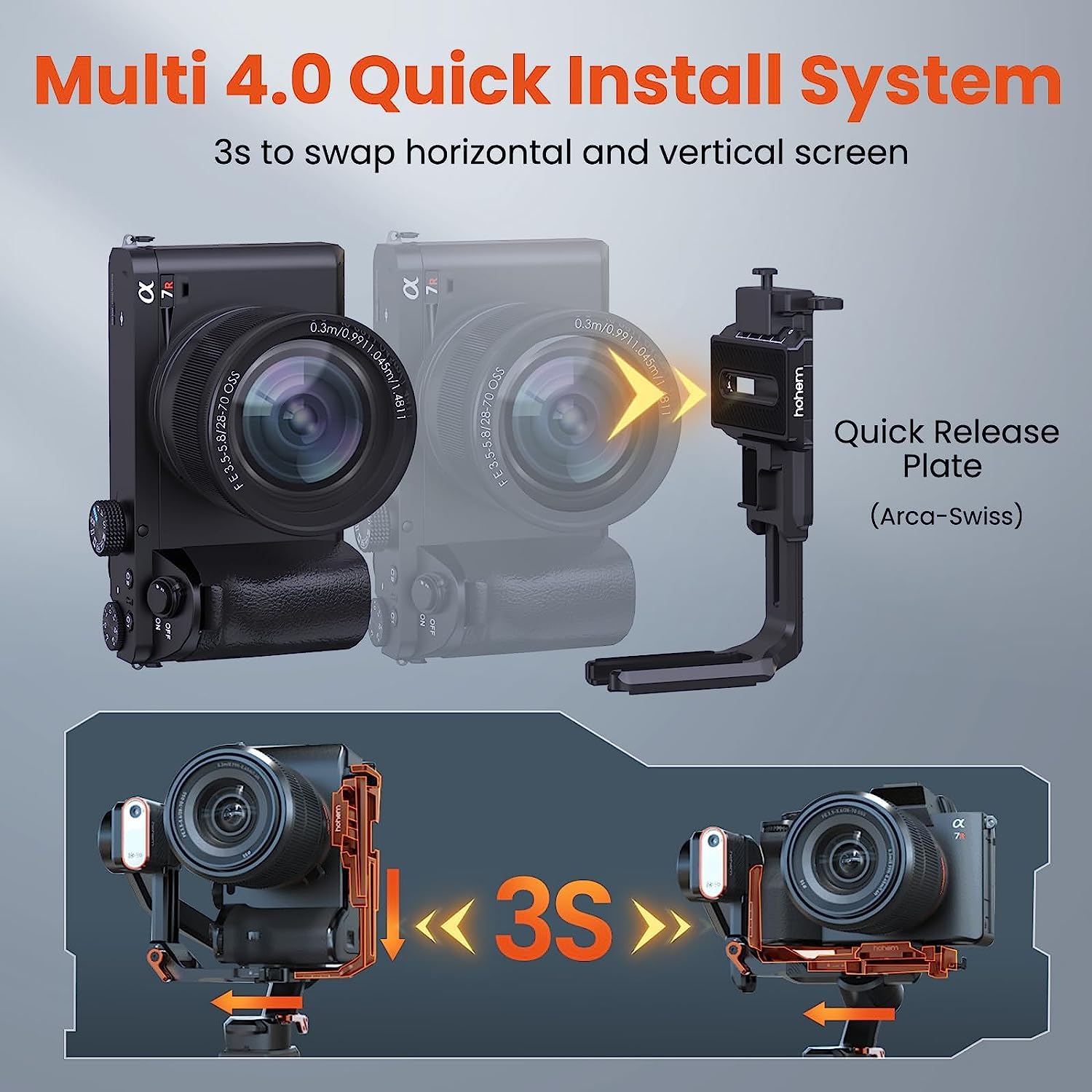 • Native Vertical Video Mode - Simply rotate the camera with L-Bracket 90° to Vertical Mode and insert it onto the mount.