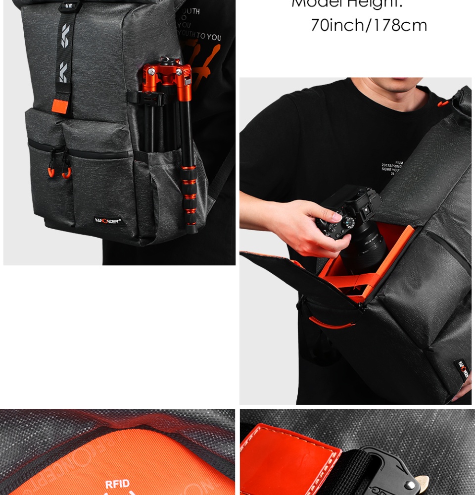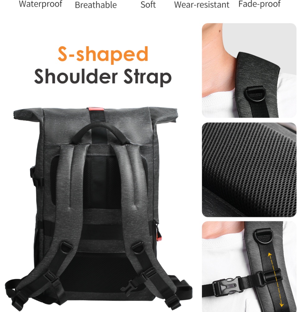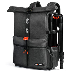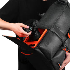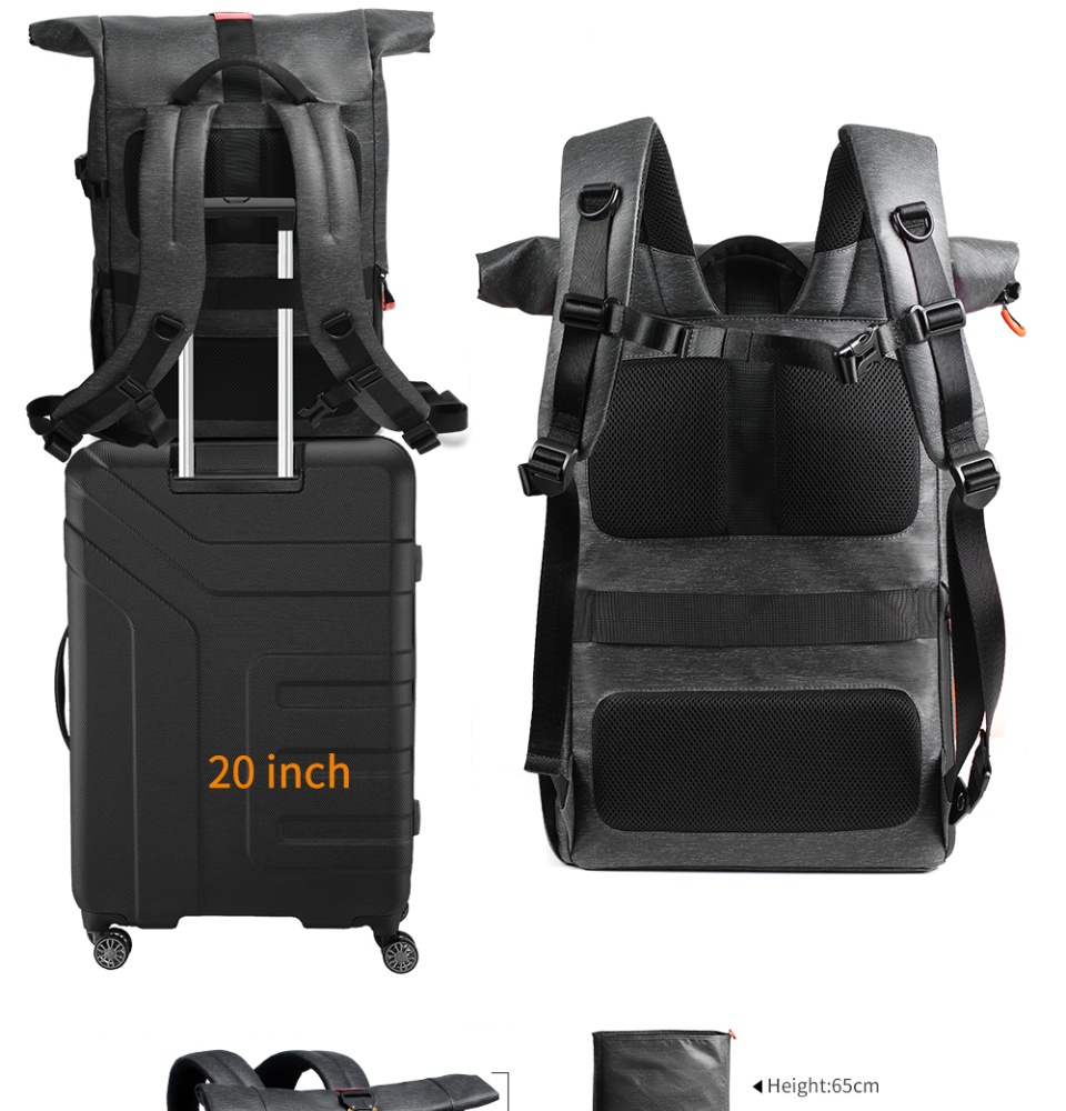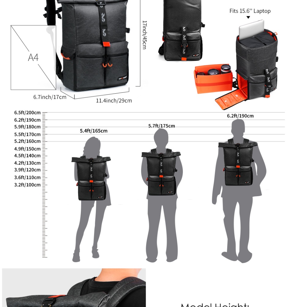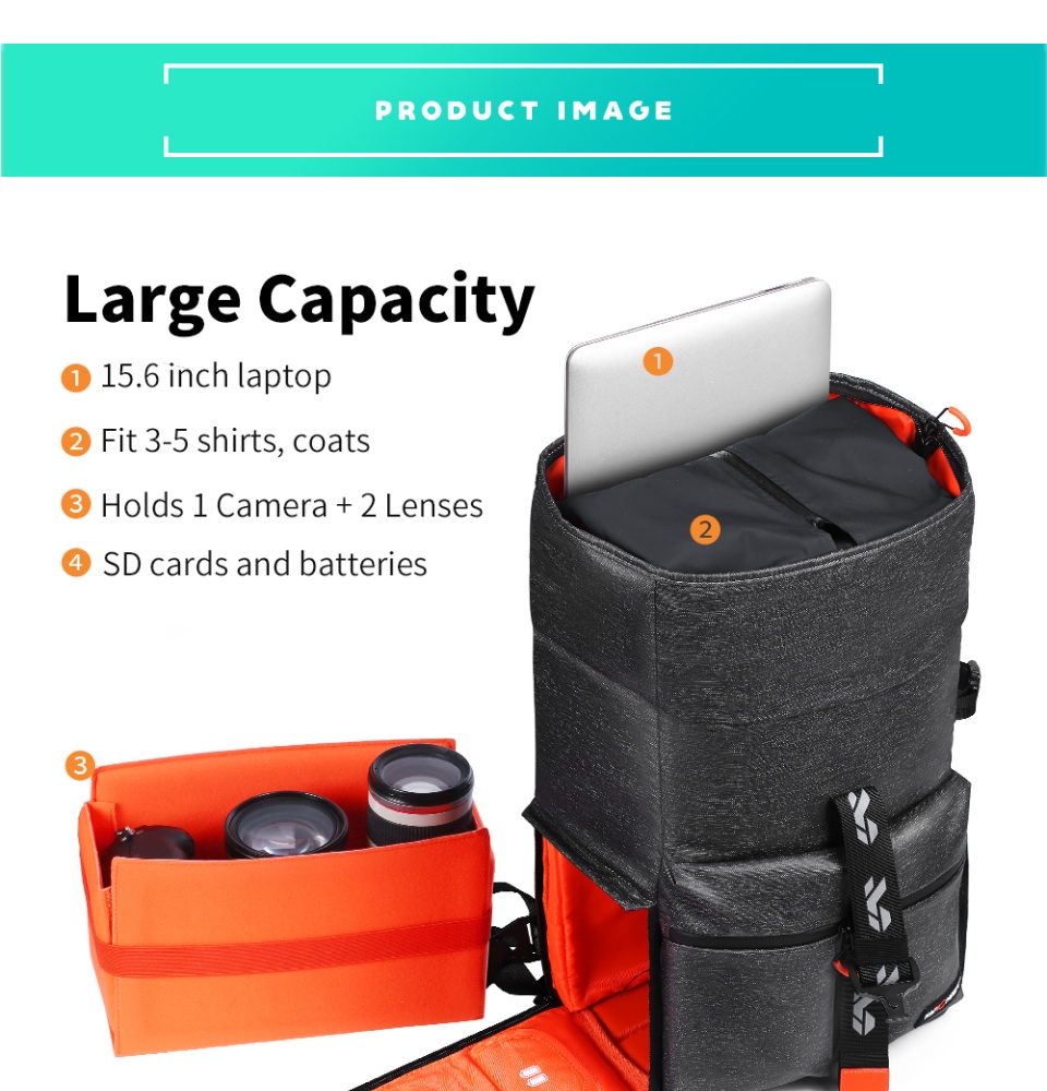 - ?Expandable Capacity?The easy-access roll-down top of the camera backpack means which gives an extra 10% of space as well as external accessory pockets for personal things and external tripod bag.