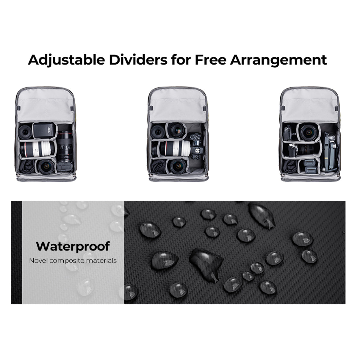 • The K&F Concept Camera Backpack has plenty of room for all your photography equipment.