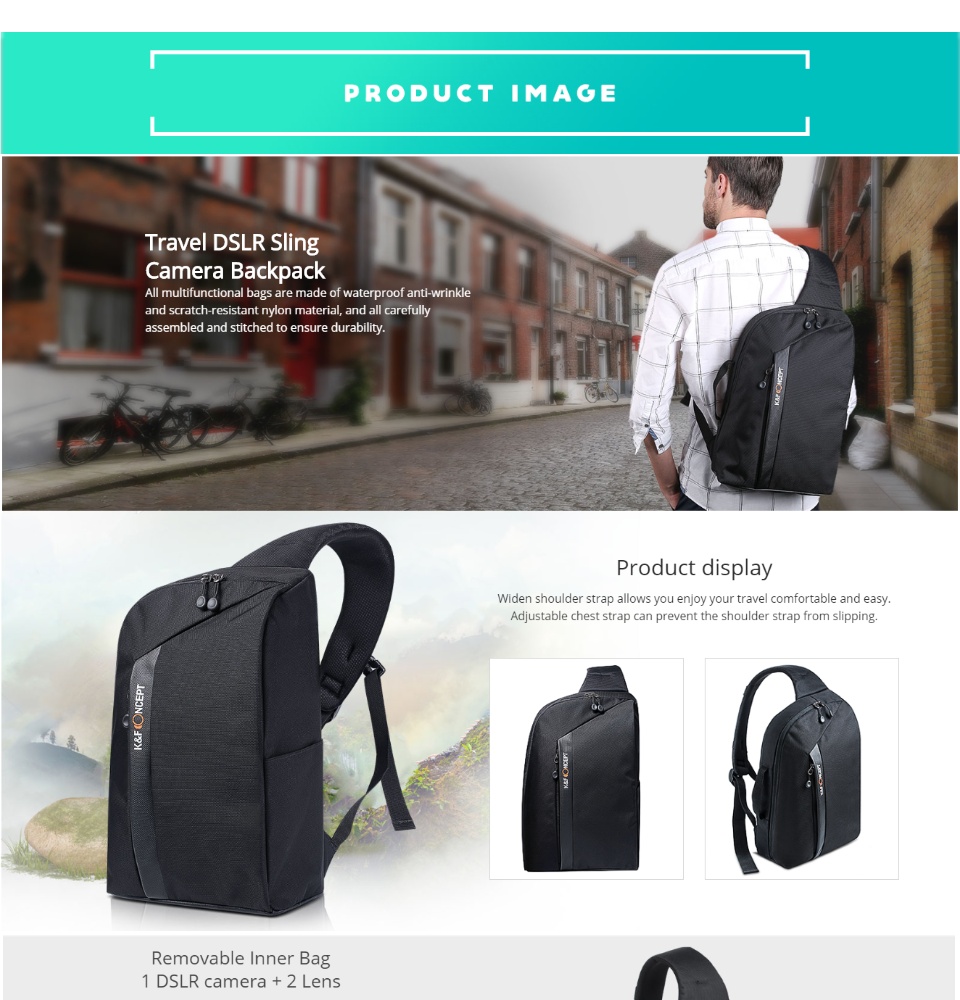 K&F Concept Freeman Series Travel DSLR Sling Camera Backpack for DSLR Mirrorless Camera Travel Photography Bag - KF13.090 FREEMAN
