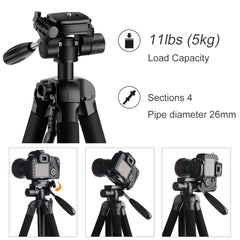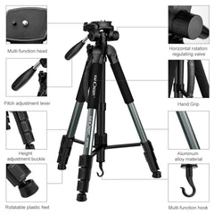 K&F Concept TM2624L 70inch Tripod with 3-Way Pan Tilt Head Gray