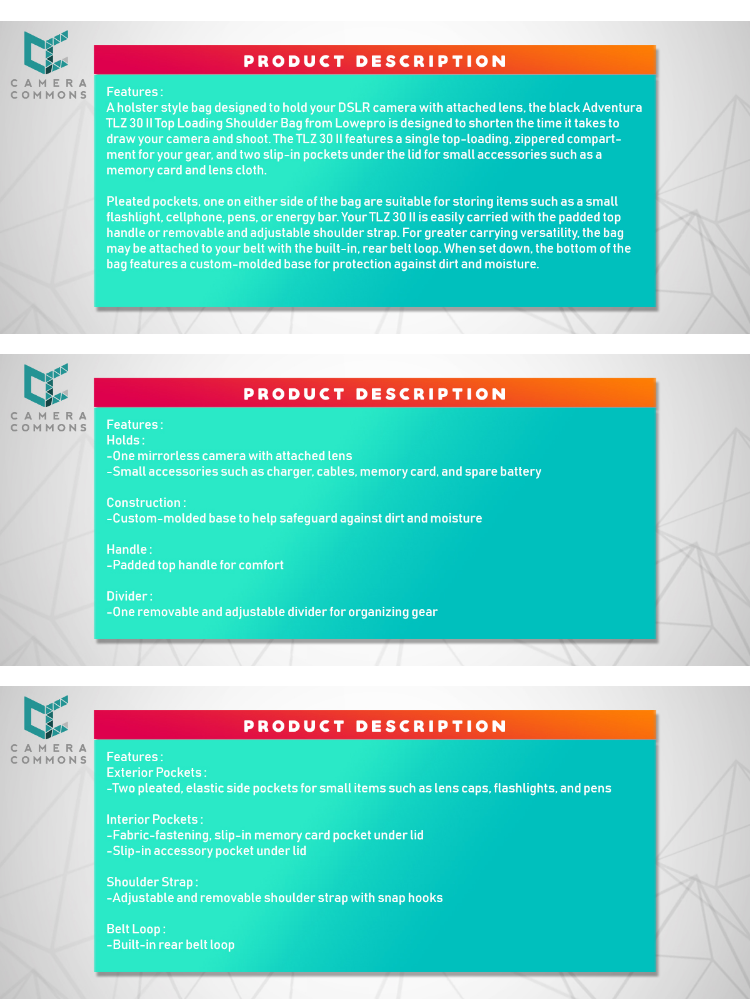Lowepro Adventura TLZ 30 II Top Loading Shoulder Bag for Camera Gears