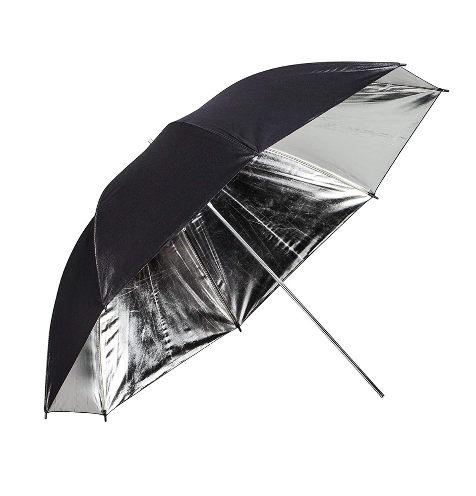 - Get even light distribution and crisp highlights with this40" Para-Pro Reflective UmbrellafromPhottix. By using a silver interior with a black backing, light will be reflected evenly onto your subject. Also, this umbrella features white fiberglass ribs for a cleaner light and durability. It comes with a carrying case for convenience.